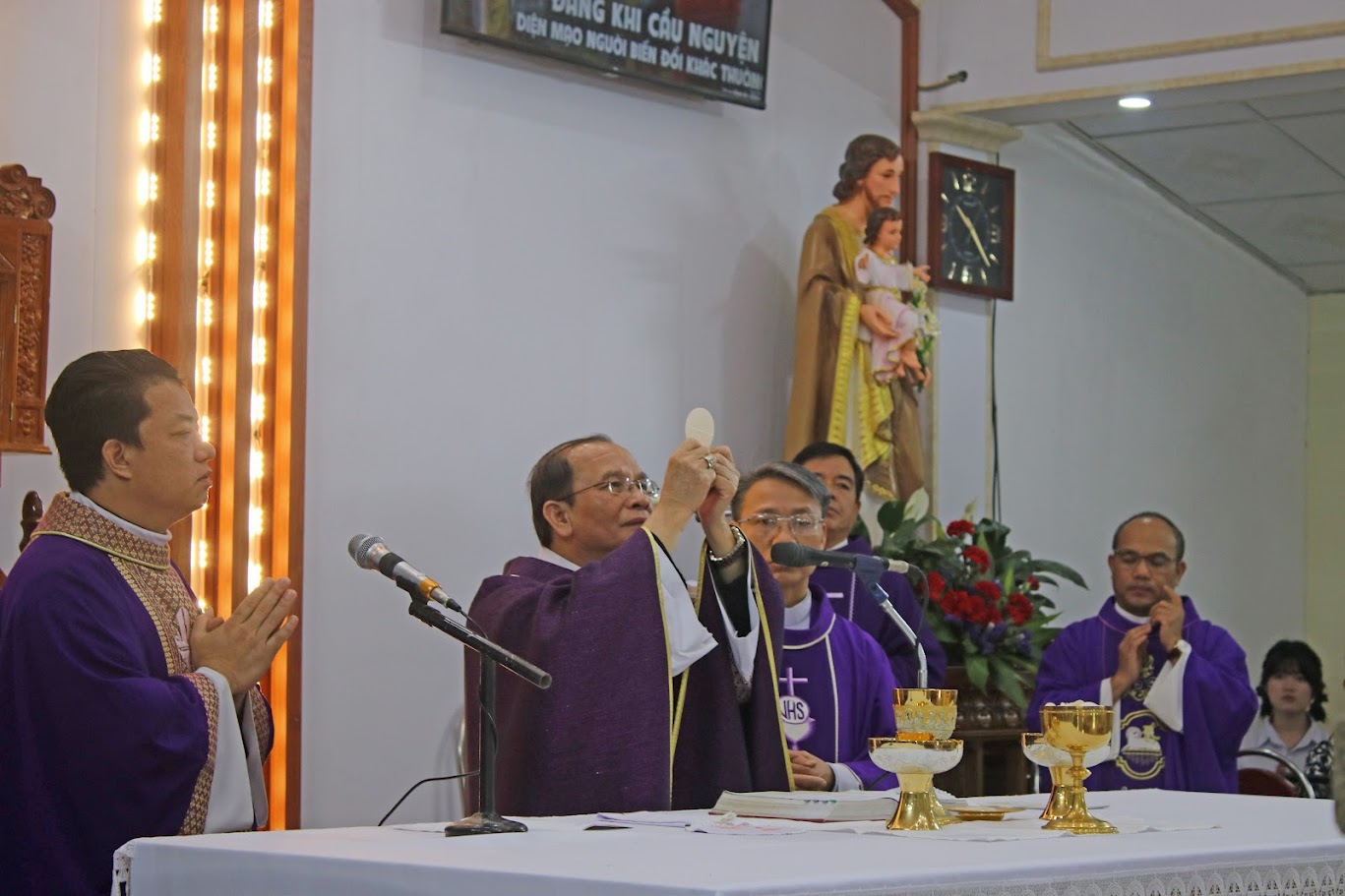 Đức Cha Giu-se đáp lời, Đức Cha chúc mừng các em thiếu nhi và cộng đoàn, ngài cầu chúc cộng đoàn sống Mùa Chay trong tinh thần cầu nguyện và sám hối. Trong Năm Thánh, ngài mời gọi cộng đoàn tổ chức hành hương để lãnh nhận ơn toàn xá cho chính mình và những người thân yêu đã ra đi. Bên cạnh đó, Đức Cha Giu-se cũng mời gọi cộng đoàn Giáo Xứ hãy đến với anh chị em lương dân để nhờ đó họ cũng nhận biết Chúa là Đấng yêu thương họ.