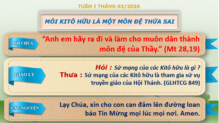 Lời Chúa và Giáo Lý năm mục vụ 2026 - Tuần 1 Tháng 3