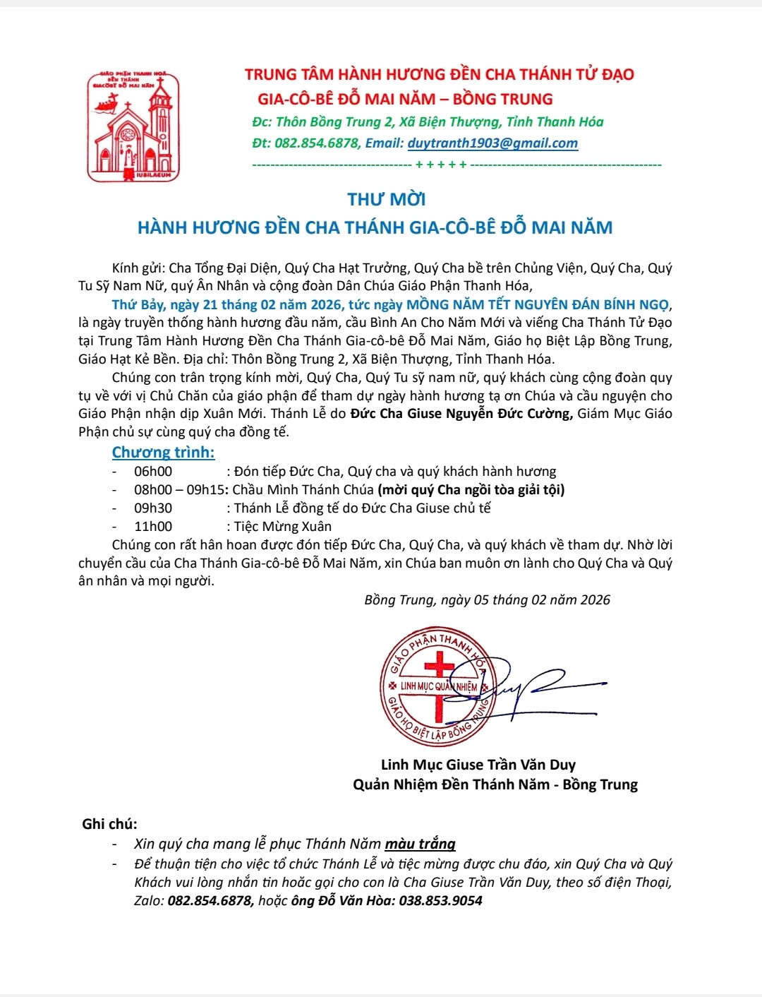 Thư mời ngày hành hương đền cha thánh Giacôbê Đỗ Mai Năm