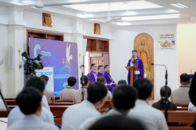 WGPPC (25.02.2024) - Chiều thứ Bảy vừa qua, ngày 25/02/2024, Đức cha Giuse Nguyễn Tấn Tước - Giám mục giáo phận Phú Cường, cũng là Chủ tịch Uỷ ban Truyền thông Xã hội trực thuộc HĐGMVN - đã dâng thánh lễ cầu nguyện và đặt tay bấm nút khởi động hệ thống C-MATE. Đây được xem là “viên đá đầu tiên” xây dựng Hệ Sinh thái Công nghệ và Truyền thông Công giáo...