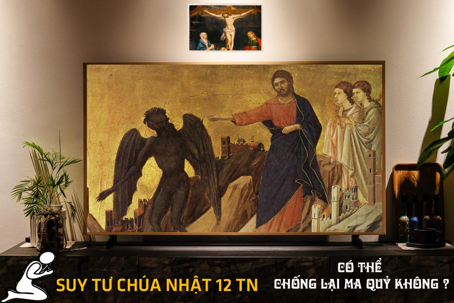 Bài Tin Mừng Chúa Nhật 12 thường niên hôm nay kể về một sự kiện Đức Giêsu đã chiến thắng ma quỷ[2]. Câu chuyện cho thấy Đức Giêsu dẹp tan sóng gió. Số là các môn đệ và vài chiếc thuyền khác đang ở giữa Biển hồ Galilê. Khi trời đã về đêm, cơn cuồng phong nổi lên. Nhiều người trong các ông vốn rành nghề biển cả, nhưng cũng hoảng sợ. Thấy Đức Giêsu đang ngủ, họ đánh thức thầy để tìm sự trợ giúp. “Người thức dậy, ngăm đe gió, và truyền cho biển: Im đi! Câm đi! Gió liền tắt, và biển lặng như tờ.”