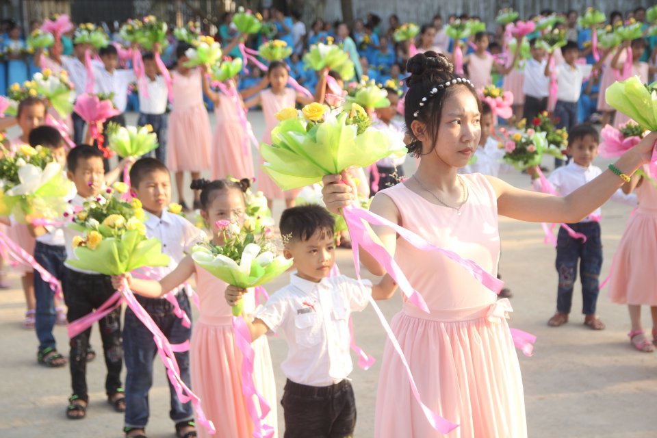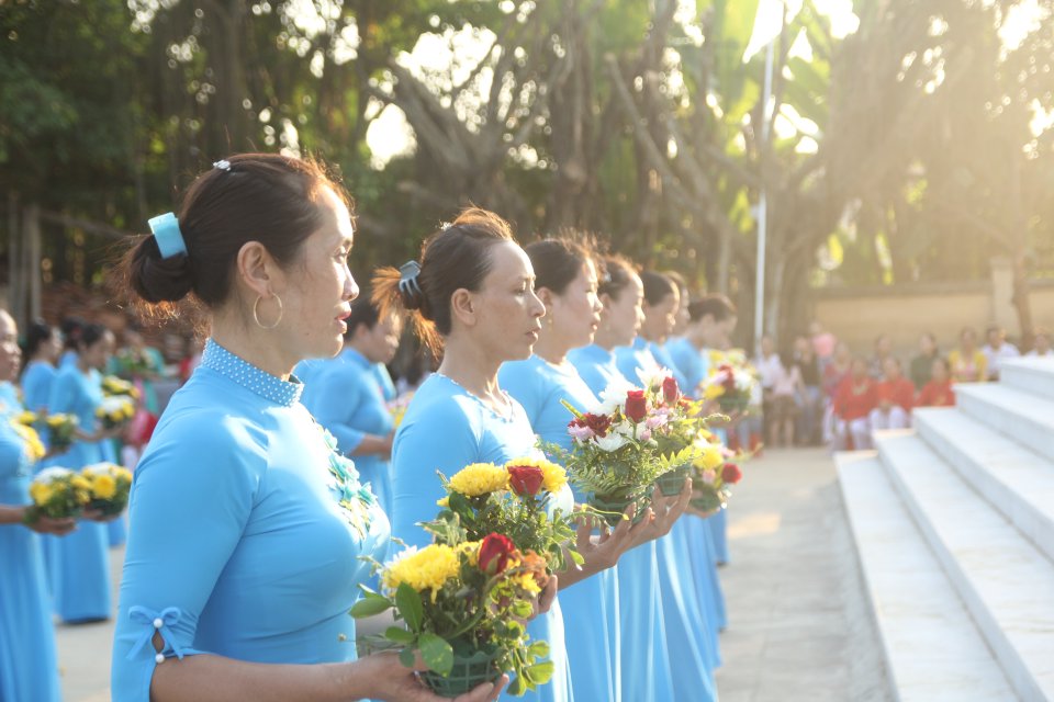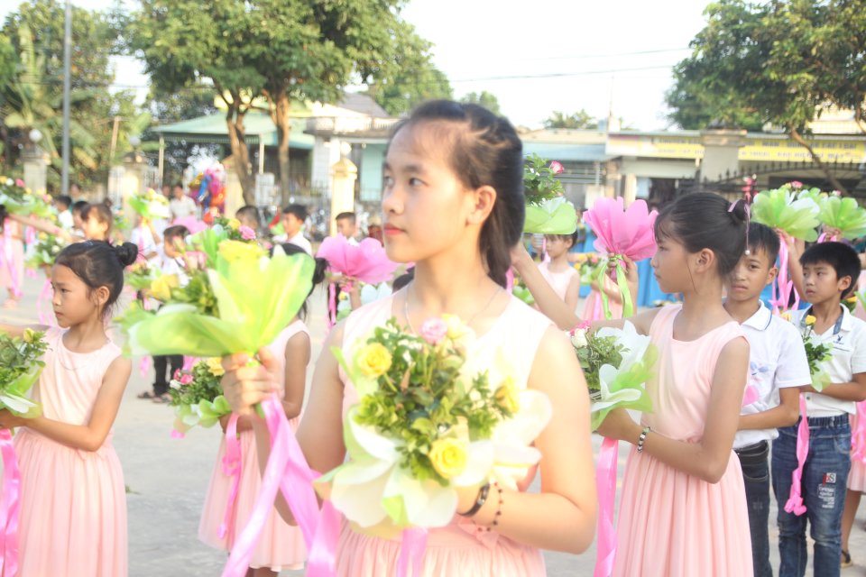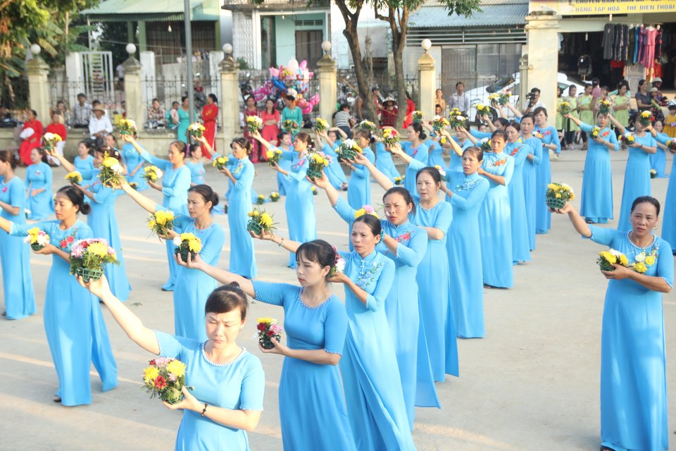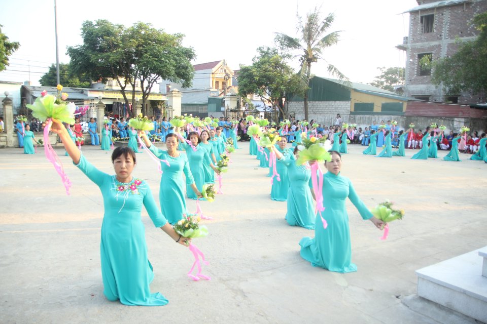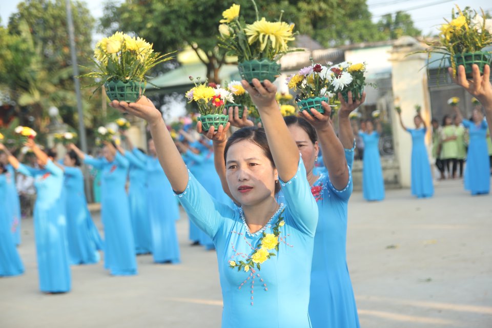 Mở đầu là hơn 60 em thiếu nhi Gia Hà cùng dâng lên Mẹ những bông hoa tươi thắm. Ánh mắt thơ ngây, nụ cười rạng rỡ hướng lên Mẹ như làm xua đi cái không khí ngột ngạt, oi bức của tiết trời tháng 5. Tiếp đến là đội hoa giới trẻ giáo xứ Thanh Bình và sau đó là đội hoa hiền mẫu của 2 giáo xứ lần lượt bày tỏ tâm tình yêu mến và tri ân Đức Mẹ.