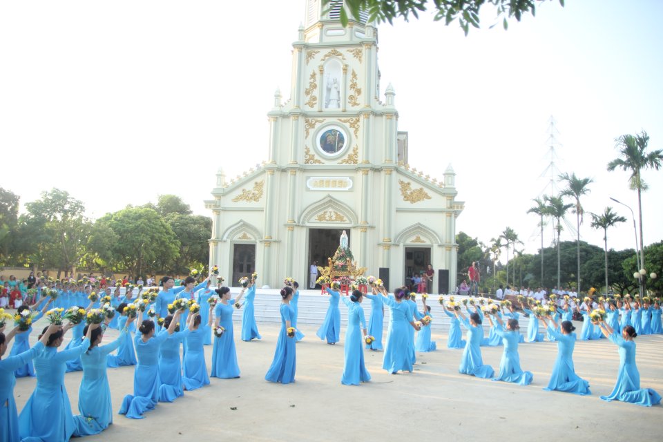 Trong Giáo Hội, cộng đoàn Dân Chúa dành trọn tháng 5 để thể hiện tâm tình yêu mến Đức Trinh Nữ Maria qua những cuộc rước kiệu và dâng hoa. Những bông hoa tươi thắm được dâng lên để bày tỏ muôn đóa hoa lòng.