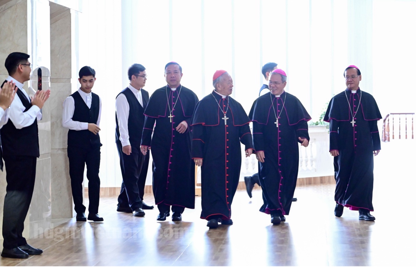 Lúc 17g00, tại hội trường Tòa Giám mục, đông đảo linh mục, tu sĩ, chủng sinh và đại diện Dân Chúa đã hiện diện để chào đón Đức Hồng y Phêrô Nguyễn Văn Nhơn, Đức Tổng Giám mục Giuse Nguyễn Năng - Chủ tịch Hội đồng Giám mục Việt Nam, cùng các Đức Giám mục và Ban Thư ký.
