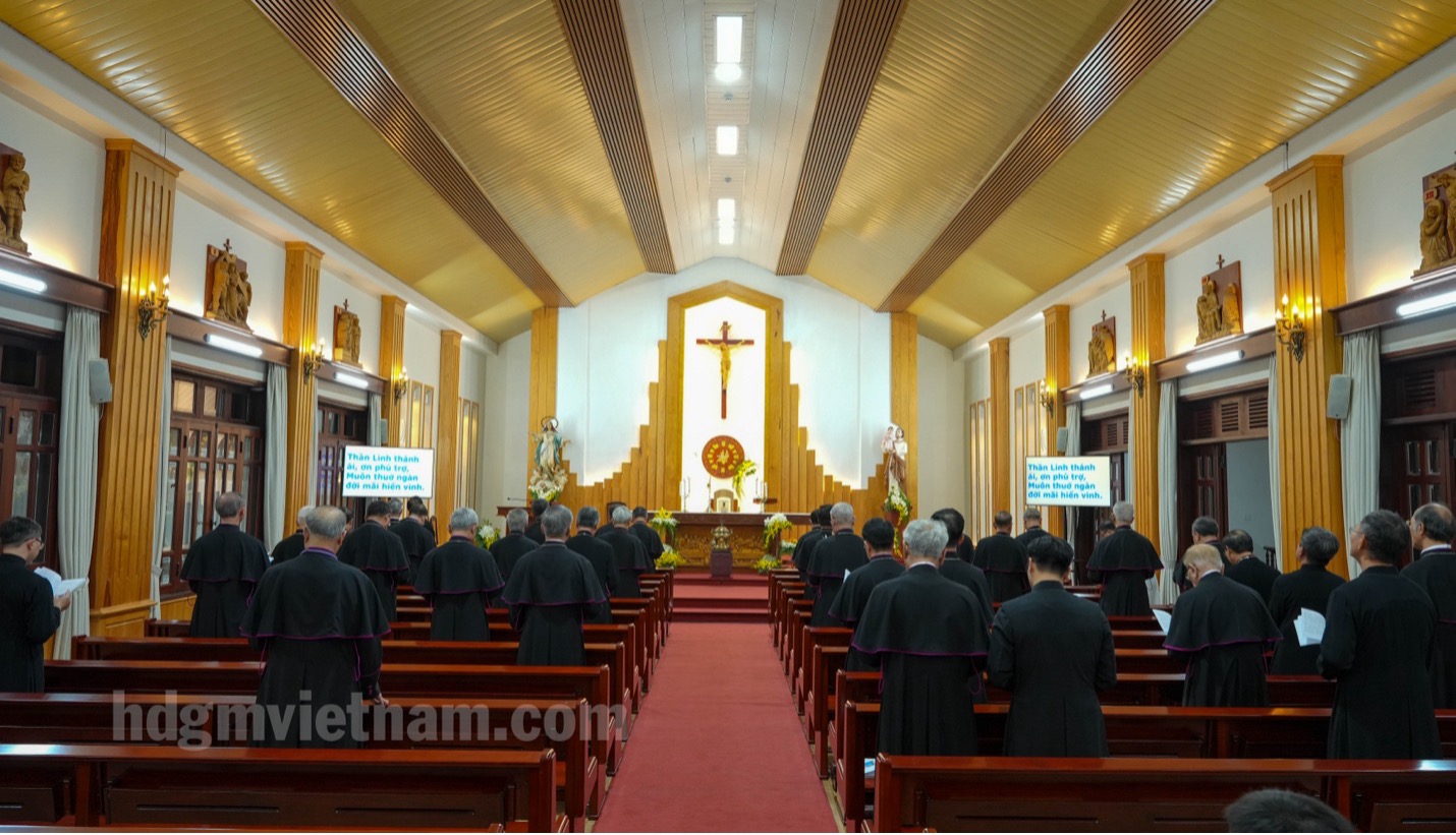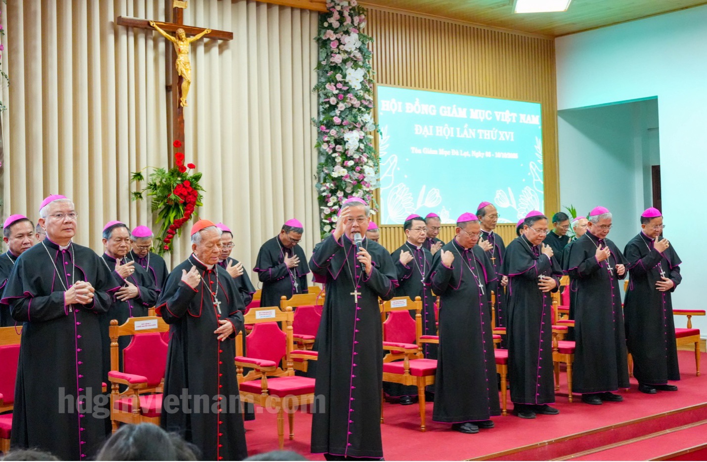 Đức Tổng Giám mục Giuse Nguyễn Năng ban phép lành, cầu xin Chúa Thánh Thần soi sáng và đồng hành với các Đức Giám mục trong những ngày Đại hội, để mọi quyết định mục vụ mang lại hoa trái tốt đẹp cho Hội Thánh Việt Nam, trong tinh thần hiệp thông – tham gia – sứ vụ.