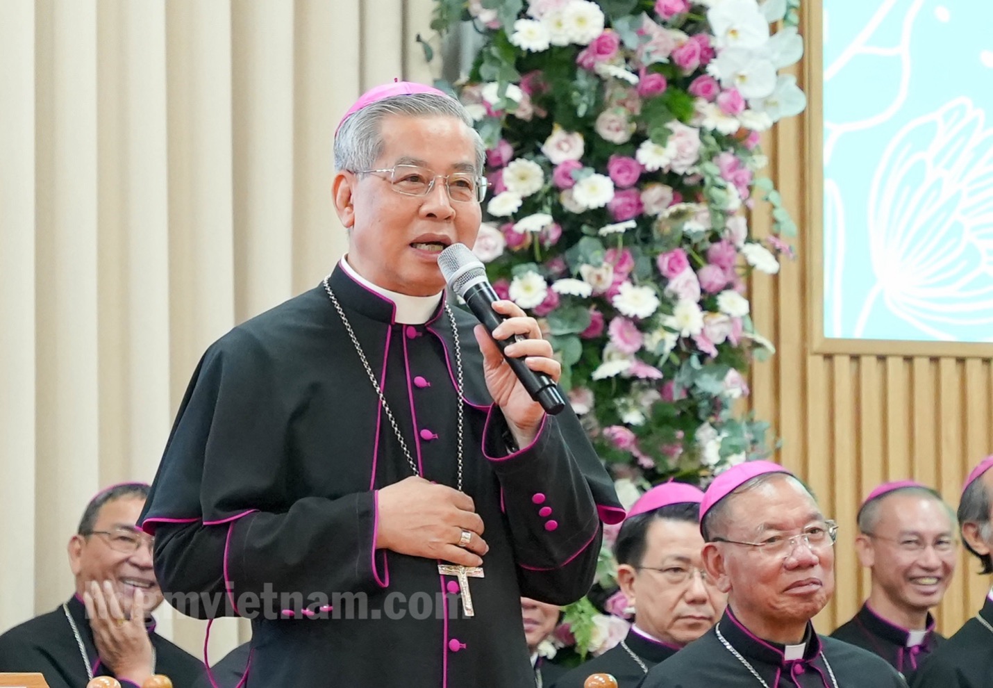 “Hội Thánh Việt Nam đang đối diện với nhiều thách đố trong đời sống đức tin và công cuộc truyền giáo. Nhưng với niềm tin tưởng vào ơn soi sáng của Chúa Thánh Thần, chúng ta cùng nhau bước đi trong hiệp thông, tham gia và sứ vụ, để hạt giống Tin Mừng tiếp tục nảy nở trên cánh đồng Việt Nam.”